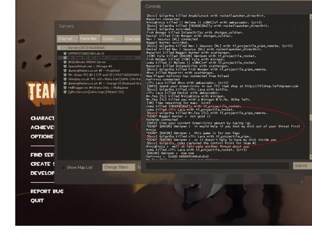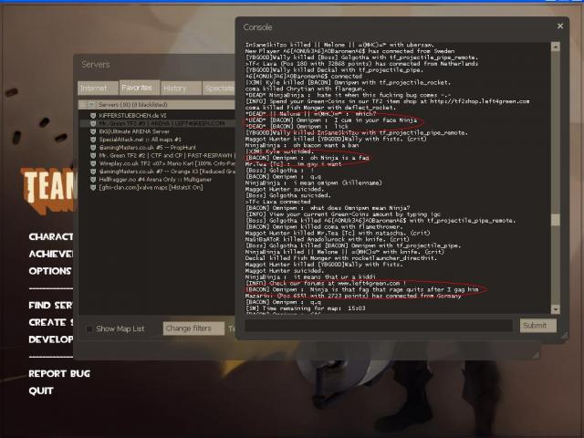 hi this guy blocked me the whole time and didnt wantet to stop (i flamed after he startet blocking) name is [bACON] Omnipwn steam id should be STEAM_0:0:1427443 47:51 the reason is here http://www.megaupload.com/?d=4K69MIDU game is team fortress 2 server is Mr. Green TF2 #3 | ARENA | LEFT4GREEN.COM