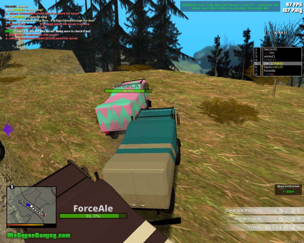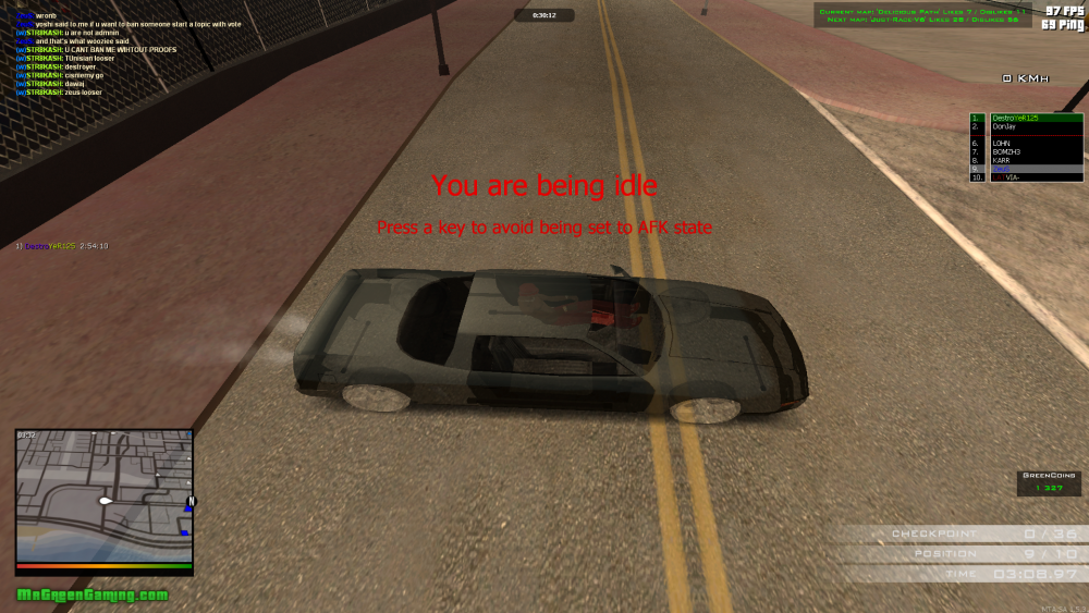17. Cena man you don't realy understand , people want to ban him not for just blocking , they want to ban him for his behavior , he blocks / rams people in his way , so he can win , otherwise he won't , then starts ttalking shit and provoking , by saying loosers and "you'll cry " , I already posted 3 screenshots and i'll post 2 more now, I don't record him blocking / ramming , cause I use my pc for other things , but here is a screenshot of him blocking me , look at the chat in the second picture , tell me this isn't enough evidence ... ( btw look at first picture , you can see he uses breake as shown in the back light of the truck while I'm trying to move forward...)