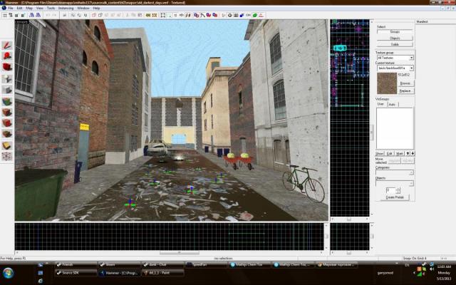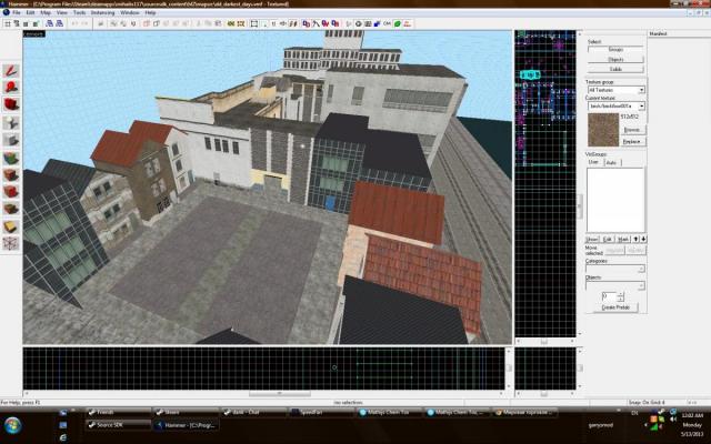 Hey! Today I want to share something fresh with you people. I've been working on this around 10 hrs only, but the result will be really good. Screenshots below. Okay, so since it's official, let's keep it official. The map will be called dd_darkest_days. It will represent the gamemode as a city in the times of a civil war happening. The idea is, 2 teams reds and blues are 2 different factions. Reds are civilians and blues are government. The map isn't big, but bigger and more open (with more parkour available) than dm_lockdown, for example. The map right now is in Work-In-Progress stage (haven't even compiled it yet). The city will have enterable buildings, many props, enough open spaces and many ways to go. 2 areas: Road way that goes near the sea and a small flooded street with crashed cars. 2 factions will have their spawnpoints. The atmosphere will be dark, rainy, foggy, storm, fires in the city, in the 3d skybox and lightnings in the sea. The ambience just as well. I was also planning to make a trailer to the gamemode, but that will take a while + not until I'm done with my exams. So yeah, time to show you a few screenshots in hammer! Be ready for real screenshots. Remember, I worked on it only 10 hours with breaks and that's it, but I have much in plans to add and change.