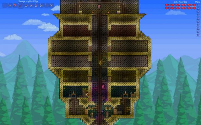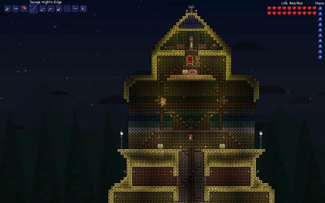 Hey, I decided to make this topic and see if someone still plays Terraria sometimes. So dudes, what have you been doing in Terraria recently? Made new houses? Fought some huge hard mode bosses? Mined 2 stacks of gold all in 1 pile? Got a Legendary Night's Edge? Made a dick out of blocks? Share your screenshots or videos. Perhaps even videos with friends! Now, since I started this topic, I already have stuff to share with . Make sure you post your shite too! Expecting good stuff Screenshots: #1,2 - My house with flickering lights #3 - Wizard's Tower #4 - DN-Reznov's nest #5 - DN-Reznov's recipe farm #6 - Sky Golden Castle takes a long time to make at least a little (WIP)