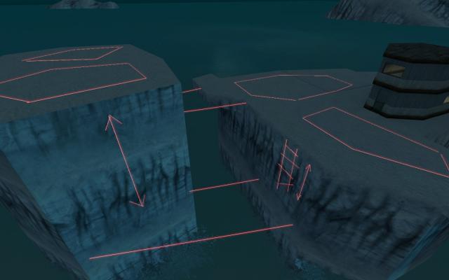 Sorry for being asleep with this map but Clavus started a new minecraft world and necro with his zs updates..etc... I have been mainly working on these ledges as you may see. First Picture shows the ledge, and the secound shows without. Adding little detail like this can greatly improve buildings which I really want. I have also been working on a form of human - transportation to get to the higher areas when being invaded my the zombies at the lower areas and provides a quick and easy get-away. Im still doing loads of testing and its working quite well. I have also shown in 'red' some of my extremely rough blue prints of where i might put the structures. There will be 2 zombie spawns, fairly seperated to avoid camping, which are marked with npc zombies and white arrows. To Tweak: Failevator Lights Buildings Floodlight Changed: Lowered windows so you can see better lighting Added: Building ledges to make them look more better. A temporary empty area in the back of the two structures. What to do next Decide what goes in the empty area Work on more ledges for the elevator building Add more structures By the way to all you mappers. I need to add some area portals once im done cause i will be using alot of lights. But all my structures have lots of windows and passages. Any idea?