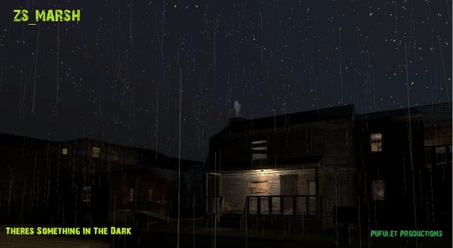 Done! Nothing more satisfying than finishing a map with hard effort! More pics in link! http://www.garrysmod.org/downloads/?a=view&id=114089 One of my finest zs maps so far. Thanks to Mr.Darkness, couldnt of done it without you xxx. Theres Something In The Dark zs_marsh is a fairly big 2 story spacious house next to a shed and an outhouse. The back is surrounded by a cliff and the front has an opening. It is raining like hell and there are a few deep puddles. The main big one in the front is the zombie spawn so watch out! There are 2 or 3 easter eggs. There is a secret pimphouse on the cliff but if you do find out how to get in... lets just say you dont want in, theres nothing usefull in there just to let you nosey buttholes know. You will want to get out as fast as you can because of something called a big boom. In the house there will be 10 sec blackouts that will randomely trigger 30-50 secounds probably because of all the thunder and the house seems to be powered by 2 generators... one of which is flooded so thats probably why. Oh and I have scattered some health vials aswell in sneaky spots. The back of the house.. or the backyard if you want to call like that is zombie proof meaning zombies have to use the front of the house to get in because its too high to jump.. Of course theres windows and maybe a sneaky little crate that you can jump on. I have specificly designed the 3d skybox to make you feel really isolated and in the middle of nowhere probably. Or is it? The map comes with the saying ' Theres Something In The Dark ' which I find to be a very nice touch. We have some ravenholm ambient sounds outside, thunder, heavy rain, darkness.. what more can a zombie map want? Well I hope you enjoy my finest and best house map yet. It is truly a zombie survival map. Enjoy! Pufulet