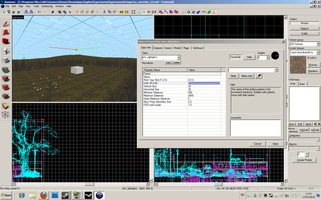 Well it seemed to compile alright but here it is just in case if you guys can spot anything else. ** Executing... ** Command: "c:\program files (x86)\games\steam\steamapps\logituch\sourcesdk\bin\orangebox\bin\vbsp.exe" ** Parameters: -game "c:\program files (x86)\games\steam\steamapps\logituch\counter-strike source\cstrike" "C:\Program Files (x86)\Games\Steam\SteamApps\logituch\garrysmod\garrysmod\maps\zs_necrotic_v3.vmf" Valve Software - vbsp.exe (Jun 8 2010) 2 threads materialPath: c:\program files (x86)\games\steam\steamapps\logituch\counter-strike source\cstrike\materials Loading C:\Program Files (x86)\Games\Steam\SteamApps\logituch\garrysmod\garrysmod\maps\zs_necrotic_v3.vmf Can't find surfaceprop stone for material DE_TIDES/TIDES_CONCRETEFLOOR, using default ConVarRef mat_reduceparticles doesn't point to an existing ConVar Could not locate 'GameData' key in c:\program files (x86)\games\steam\steamapps\logituch\counter-strike source\cstrike\gameinfo.txt Patching WVT material: maps/zs_necrotic_v3/nature/blenddirtgrass001b_wvt_patch - Has been looked at by meh Patching WVT material: maps/zs_necrotic_v3/nature/blendrockdirt006a_wvt_patch - Has been looked at by meh fixing up env_cubemap materials on brush sides... ProcessBlock_Thread: 0...1...2...3...4...5...6...7...8...9...10 (0) ProcessBlock_Thread: 0...1...2...3...4...5...6...7...8...9...10 (1) Processing areas...done (0) Building Faces...done (0) Chop Details...done (0) Find Visible Detail Sides... Merged 36 detail faces...done (0) Merging details...done (0) FixTjuncs... PruneNodes... WriteBSP... done (0) writing C:\Program Files (x86)\Games\Steam\SteamApps\logituch\garrysmod\garrysmod\maps\zs_necrotic_v3.prt...Building visibility clusters... done (0) Creating default LDR cubemaps for env_cubemap using skybox materials: skybox/sky_borealis01*.vmt ! Run buildcubemaps in the engine to get the correct cube maps. Creating default HDR cubemaps for env_cubemap using skybox materials: skybox/sky_borealis01*.vmt ! Run buildcubemaps in the engine to get the correct cube maps. Finding displacement neighbors... Finding lightmap sample positions... Displacement Alpha : 0...1...2...3...4...5...6...7...8...9...10 Building Physics collision data... done (1) (341536 bytes) Placing detail props : 0...1...2...3...4...5...6...7...8..Material NATURE/BLENDDIRTGRASS001B uses unknown detail object type grass01! Material NATURE/BLENDDIRTGRASS001B uses unknown detail object type grass01! Material NATURE/BLENDDIRTGRASS001B uses unknown detail object type grass01! Material NATURE/BLENDDIRTGRASS001B uses unknown detail object type grass01! Material NATURE/BLENDDIRTGRASS001B uses unknown detail object type grass01! Material NATURE/BLENDDIRTGRASS001B uses unknown detail object type grass01! Material NATURE/BLENDDIRTGRASS001B uses unknown detail object type grass01! .9...10 Compacting texture/material tables... Reduced 572 texinfos to 429 Reduced 118 texdatas to 109 (3071 bytes to 2660) Writing C:\Program Files (x86)\Games\Steam\SteamApps\logituch\garrysmod\garrysmod\maps\zs_necrotic_v3.bsp 3 seconds elapsed ** Executing... ** Command: "c:\program files (x86)\games\steam\steamapps\logituch\sourcesdk\bin\orangebox\bin\vvis.exe" ** Parameters: -game "c:\program files (x86)\games\steam\steamapps\logituch\counter-strike source\cstrike" "C:\Program Files (x86)\Games\Steam\SteamApps\logituch\garrysmod\garrysmod\maps\zs_necrotic_v3" Valve Software - vvis.exe (Jun 8 2010) 2 threads reading c:\program files (x86)\games\steam\steamapps\logituch\garrysmod\garrysmod\maps\zs_necrotic_v3.bsp reading c:\program files (x86)\games\steam\steamapps\logituch\garrysmod\garrysmod\maps\zs_necrotic_v3.prt 1118 portalclusters 3227 numportals BasePortalVis: 0...1...2...3...4...5...6...7...8...9...10 (1) PortalFlow: 0...1...2...3...4...5...6...7...8...9...10 (570) Optimized: 3128 visible clusters (0.00%) Total clusters visible: 296307 Average clusters visible: 265 Building PAS... Average clusters audible: 825 visdatasize:259774 compressed from 321984 writing c:\program files (x86)\games\steam\steamapps\logituch\garrysmod\garrysmod\maps\zs_necrotic_v3.bsp 9 minutes, 31 seconds elapsed ** Executing... ** Command: "c:\program files (x86)\games\steam\steamapps\logituch\sourcesdk\bin\orangebox\bin\vrad.exe" ** Parameters: -game "c:\program files (x86)\games\steam\steamapps\logituch\counter-strike source\cstrike" "C:\Program Files (x86)\Games\Steam\SteamApps\logituch\garrysmod\garrysmod\maps\zs_necrotic_v3" Valve Software - vrad.exe SSE (Jun 8 2010) Valve Radiosity Simulator 2 threads [Reading texlights from 'lights.rad'] [1 texlights parsed from 'lights.rad'] Loading c:\program files (x86)\games\steam\steamapps\logituch\garrysmod\garrysmod\maps\zs_necrotic_v3.bsp Setting up ray-trace acceleration structure... Done (1.68 seconds) 4784 faces 487630 square feet [70218840.00 square inches] 22 Displacements 24427 Square Feet [3517619.00 Square Inches] 4784 patches before subdivision 38426 patches after subdivision sun extent from map=0.173648 27 direct lights BuildFacelights: 0...1...2...3...4...5...6...7...8...9...10 (10) BuildVisLeafs: 0...1...2...3...4...5...6...7...8...9...10 (12) transfers 3115306, max 698 transfer lists: 23.8 megs GatherLight: 0...1...2...3...4...5...6...7...8...9...10 (0) Bounce #1 added RGB(19165, 19558, 14563) GatherLight: 0...1...2...3...4...5...6...7...8...9...10 (0) Bounce #2 added RGB(3162, 3453, 2032) GatherLight: 0...1...2...3...4...5...6...7...8...9...10 (0) Bounce #3 added RGB(562, 680, 326) GatherLight: 0...1...2...3...4...5...6...7...8...9...10 (1) Bounce #4 added RGB(109, 148, 60) GatherLight: 0...1...2...3...4...5...6...7...8...9...10 (0) Bounce #5 added RGB(22, 34, 12) GatherLight: 0...1...2...3...4...5...6...7...8...9...10 (0) Bounce #6 added RGB(5, 8, 2) GatherLight: 0...1...2...3...4...5...6...7...8...9...10 (0) Bounce #7 added RGB(1, 2, 1) GatherLight: 0...1...2...3...4...5...6...7...8...9...10 (1) Bounce #8 added RGB(0, 1, 0) Build Patch/Sample Hash Table