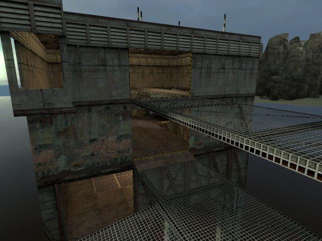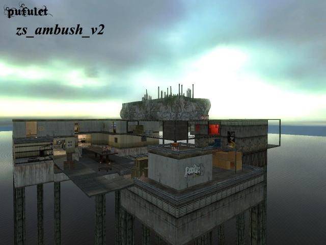 I realy liked zs_ambush because it was original and it had a good atmoshere so i decided to make another ambush, but in this one i will make improvements that ambush v1 didnt have. * please ignore picture 2, an older version slipped in * There is still much much much work to do. Im about 60% finished with the basic structure.. more supports, new catwalks and more buildings will be added. The ocean will be widened even more than ambush if i can figure out how to use a 3d skybox.. in the background there will be a small city that you can see on an island and i will add an ambient_generic battle sound for it.