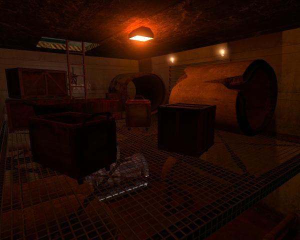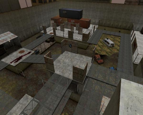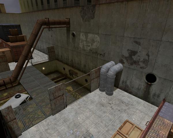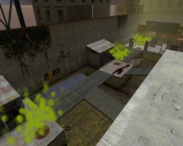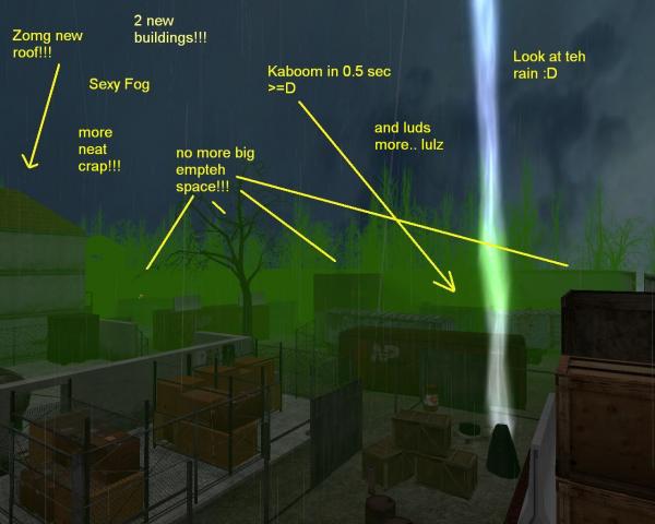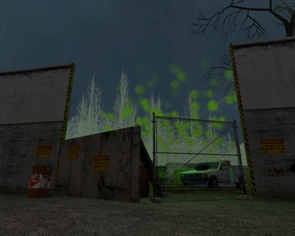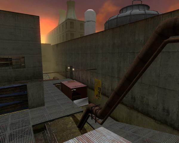 This place is a deserted 'dump' Soon after Im done with it I will pass it on to Zincoshine so he can see if theres anything that can be improved or optimized. So far it includes: 3 buildings with 3 floors Ground floor covered in waste, not to mention the radioactive crap Outside storage areas An area with pipes n fences n stuff Health charger in the 'cross section' of the catwalk floors A few healthvials scattered around the place and batteries. Old vehicles around the waste. Some more rooms. A yellow fog, which I think is better than my old siege fog :Z. There 2 storage rooms with red light and 2 with blue. Its near night. And some more stuff.