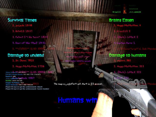 6. I just wanna point out that the spawnprotection for zombies is way too long.. Fuck me, they come with fast and normal zombie and you can't do shit about it. They're very fast and you cannot kill them when the spawnprotection is on.. Please shorten it or remove it completely, it's very unfair towards humans ): Thanks. -Danni