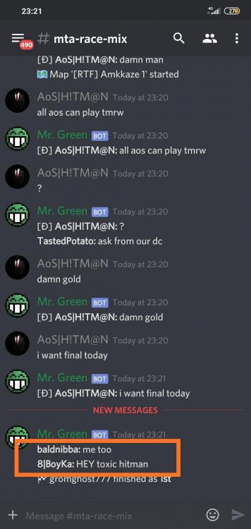 Well i m not being much active these days. But i have seen avezy using oc many times even for me i just ignore it. Other than that if you guys see mentor insulting you should just report him. Also, i barely see mentor doing chat he mostly use team chat . Secretly insulting or provoking you may not see it then how its a insult either get some solid proofs to justify your statement that he is insulting or provoking. Also @JaegeR34 how buying maps justify that he is a different guy. @Avezy doing gk in shooter justifies how toxic a guy is then half of server would be banned. Its not like i dont know your behaviour your behaviour is quite provoking.