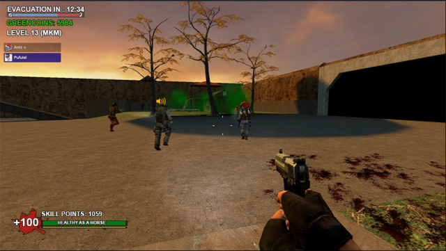 Took me quiet a while to come up with something. I tried to do something new whilst sticking to the original Mr.Green style and colour schemes. (FONT CAN BE CHANGED... ARIAL IS ALL I HAD) Things I've Added: *Player Count Infliction Bar - The reason why I added this was simply for visual purposes. I wanted to come up with something new. It should move depending on the infliction percentage. This should stand out more to new come-players. *Original Infliction Bar *Level Class Abbreviation - .. eg (MKM) - Level 1 marksman.. *p.s there are a few bugs like zombie teleportation glitch I've experienced on the server.