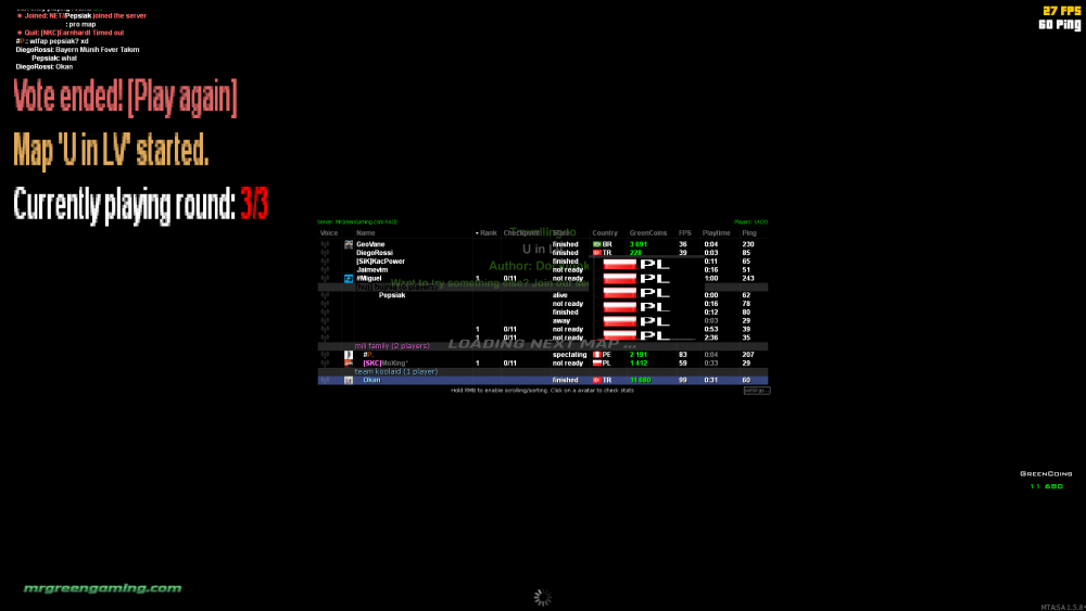9. i'm going to discuss 2 issues that directly catches my eye, let's get straight to the point; 1. LAGGERS there are so many players from regions such as south america, eastern asia, australia, etc. and they all have constant pings above ~200 (because of their distance to the server obviously). yet they are never marked as laggers if they don't reach pings like 300-400 (which doesn't help because they are on around 200 ping %90 of the time) when i'm racing against someone that has that much ping i always get in carnage and get spun or vice versa. i see them differently position wise on my screen so do they. this can be fixed with maybe dividing players into high/low ping groups and making them not interfering with each other. but i have a better and easier solution. MY SUGGESTION: reduce the [LAGGER] mark threshold to around 100-150 2. VOTE MANIPULATORS this is a common issue in the server, people manipulating the map votes with their team/nation. this problem is usually caused by polish players but occasionally some other clans/nations do this also, and it should get fixed. because every map is getting played 3 times just because bunch of no lifers want top scores on every single map. i just witnessed a polish tryhard clan or whatever use the server like a training/cw server and it really proved to me that it's a big problem. a clan should never be able to dominate a casual server's player count and replay every map in order to get top times. (THIS ALSO INCLUDES BUYING MAPS AND REPLAYING IT 3 TIMES) they should get a server themselves and go replay maps there, this server is not a training/cw server. most people enjoy playing different maps as much as possible because they don't get to play this game too much and joining to something like this may put off new players. this issue can be fixed by maybe putting a price on "play again" vote, like 50-100gc (similar to map buying). i don't know how would you handle mass voting by players in the same team, i haven't thought anything logical about that so you can suggest below. MY SUGGESTION: remove play again option completely (or reduce to only once) and increase the map buying price