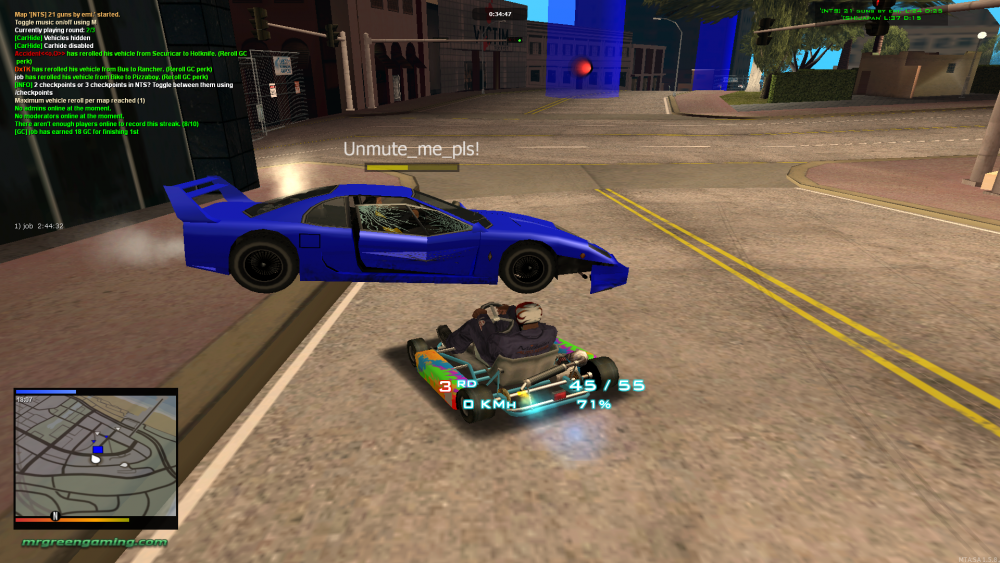 What gustavo said is true, is impossible to race without ghost mode playing from south america, the position i am on my screen is not the position other people see me or the position the server places me in, generally in my screen i am the first but in a straight line i am like 4th or 5th, when GM turns off i generally crash into others or vice versa, and the only way to overtake someone is ramming them, so i would like perma ghost mode.