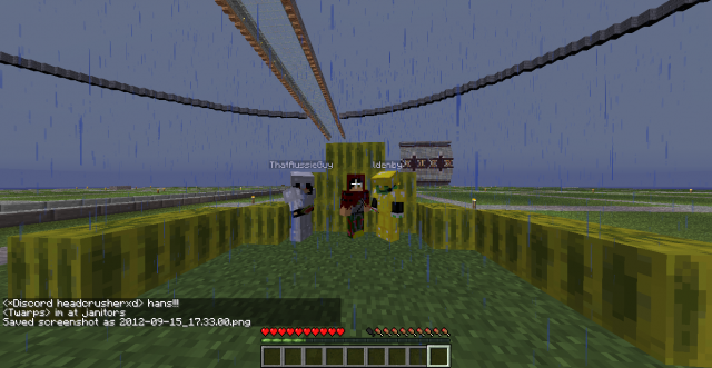 I'm all for it on single player, and small private servers with your friends. But I feel it has taken the fun out of pvp for me, there's no 'va-va-voom' anymore. Of course this is just a curse of being a comparatively early player, all the newer minecrafters probably love the PVP because they don't know any different. I think the days of Rangers are over. I can't see us ever returning to raiding for more than 4 hours, and I can't really build anything too cool with the map being reset so often. I might just become the server's tramp and beg for iron ingots around spawn. I only give noobs iron blocks, sorry :'( If you only give noobs iron blocks... Whats wrong with giving Awesomeo iron? JkJK