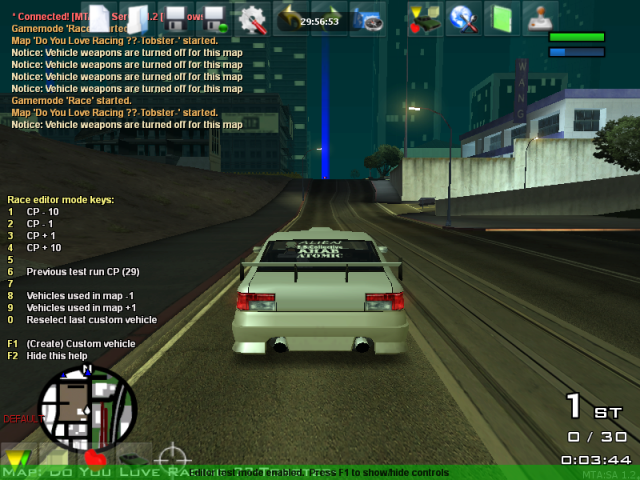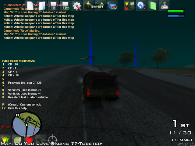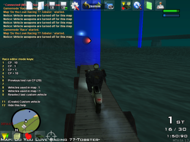 So you tried it out and did you like it ? I am coming up with 2 or more race maps thhat everrryonnne will love.i know it so get ready for an awesome map that i am about to start if i have time so. ill take off the music and re-send it. When i tried the music on my map it didn't work;did you hear the music play cause i wasn't able to.