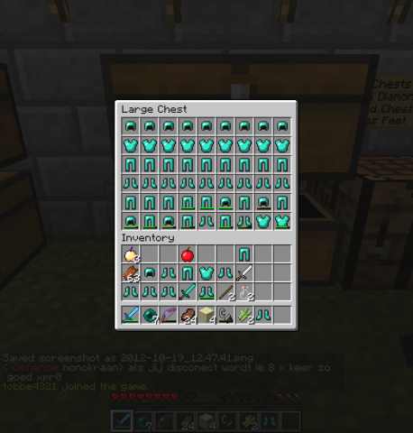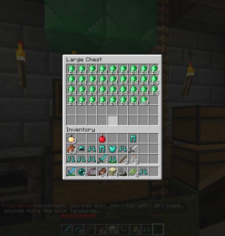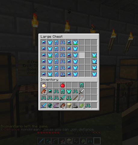 Internet dick measuring contest! Count me in! Unfortunately this is all we have left, after giving away/selling upwards of 30 complete sets of diamond. I don't even remember how much I gave to LRG, or how much was sold to sphere XD!!! But, I know the equivalent of 3000+ diamonds worth of stuff has been gathered. Side note, no mining here either.