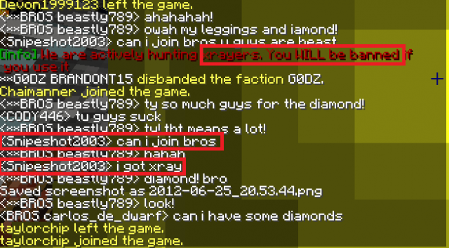 ............ me and my friend were spleefing and you came in .. and spammed potions at me than said "mlg cunts" i guess i knew you wanted out you shouldnt of came in