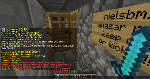 The Ingame Name: alessandro100 Date of the ban: 17/09/2012 What game/server are the account is banned from: The game: Minecraft, The server: server.minecraft.nl Who banned the account: Corby Reason why the account got banned: Forcefield Reason why we should unban the account: I think it was just lag because alessandro100's head never turned, and as known forcefield makes your head turn or else nocheat/nocheatplus/anticheat would have stopped it. It is possible that alessandro100 standed there, the player filming had a client side lag while alessandro100 was hitting him to keep him of and the client received the data from the server directly after each other at the exact moment he was jumping on alessandro100 and then alessandro100 ran further. I hope alessandro100 gets unbanned because this was his favorite server. An excuse for any possible spelling mistake in this unban topic. This unban topic is made by a dutch thirteen year old kid. Greetings from AliasAr
